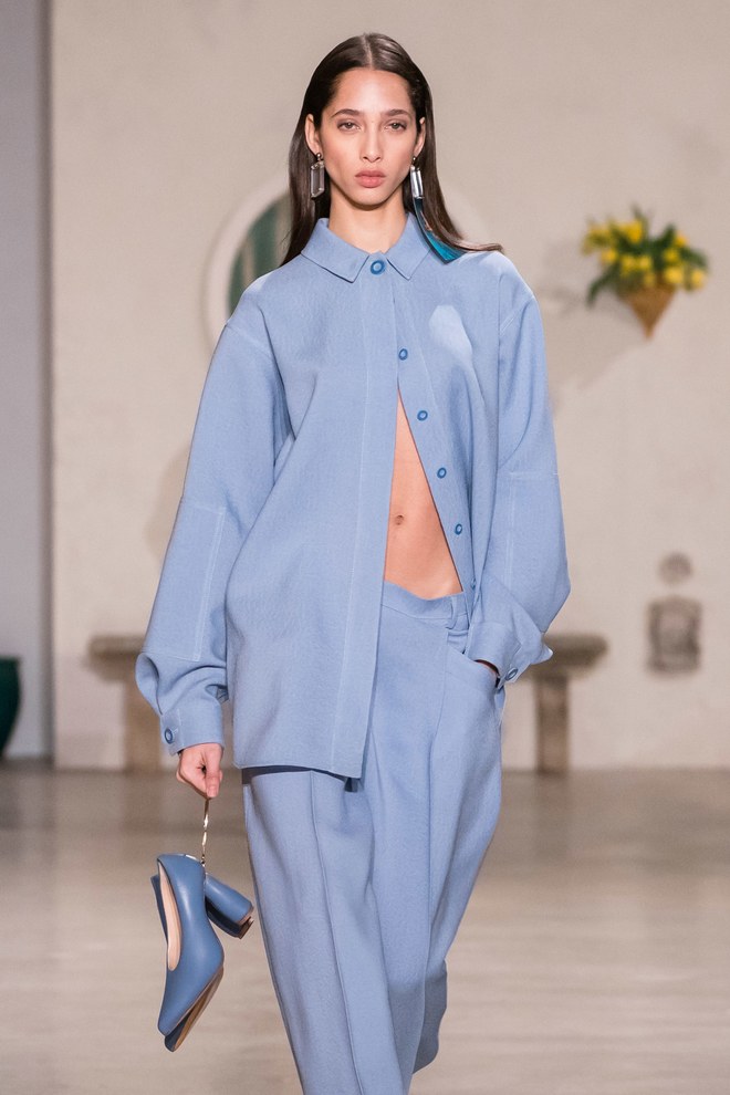 The young women at Jacquemus strolled through a provincial town square with smooth center-parted hair that fell effortlessly down their backs.