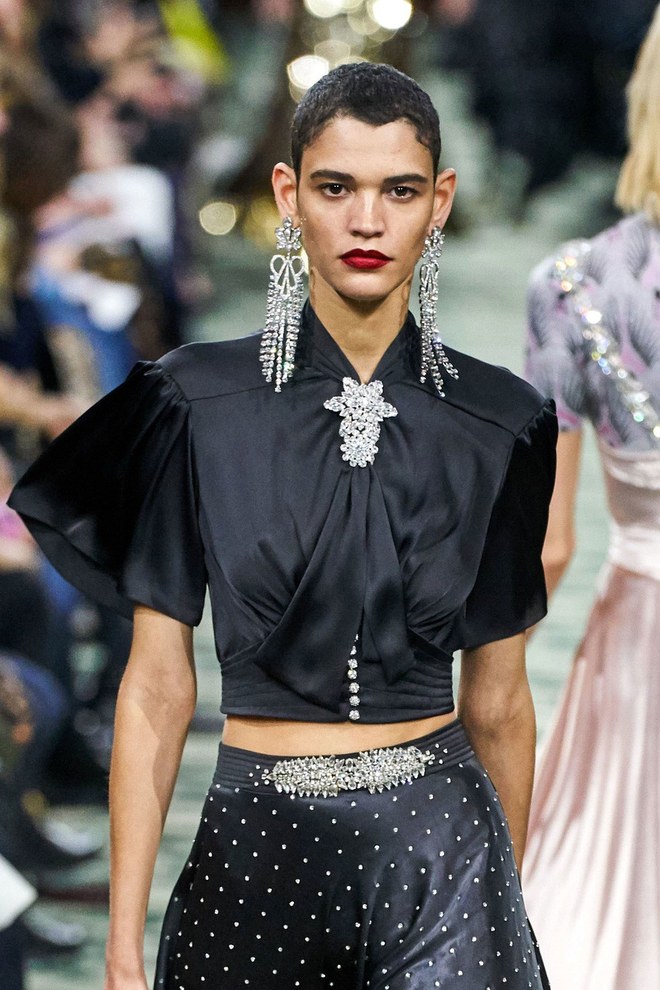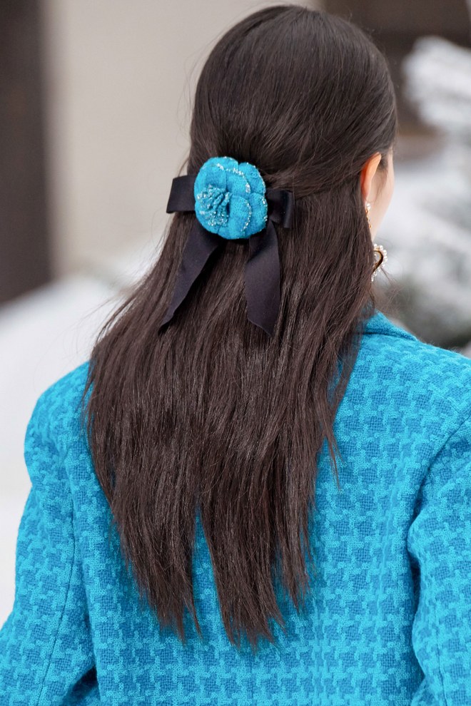 Chanel revealed Karl Lagerfeld’s final collection for the house with a loving homage to his incredible life and work. McKnight did his part in creating the chic half-back hair, embellished by black ribbons, camellias, and other pretty bijoux.